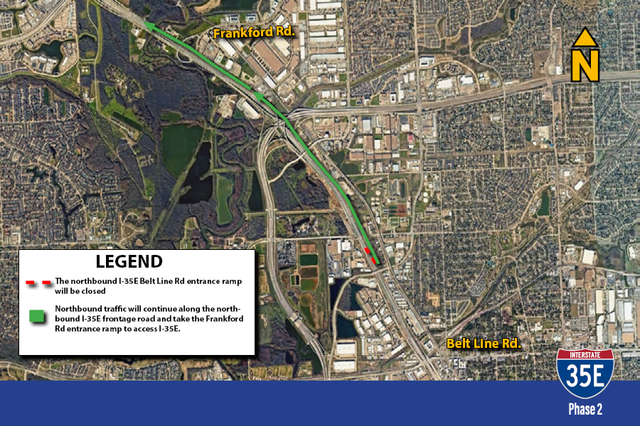 The northbound Belt Line Road entrance ramp will be closed from 8 p.m. Saturday, January 10 until 6 a.m. Monday, January 12.