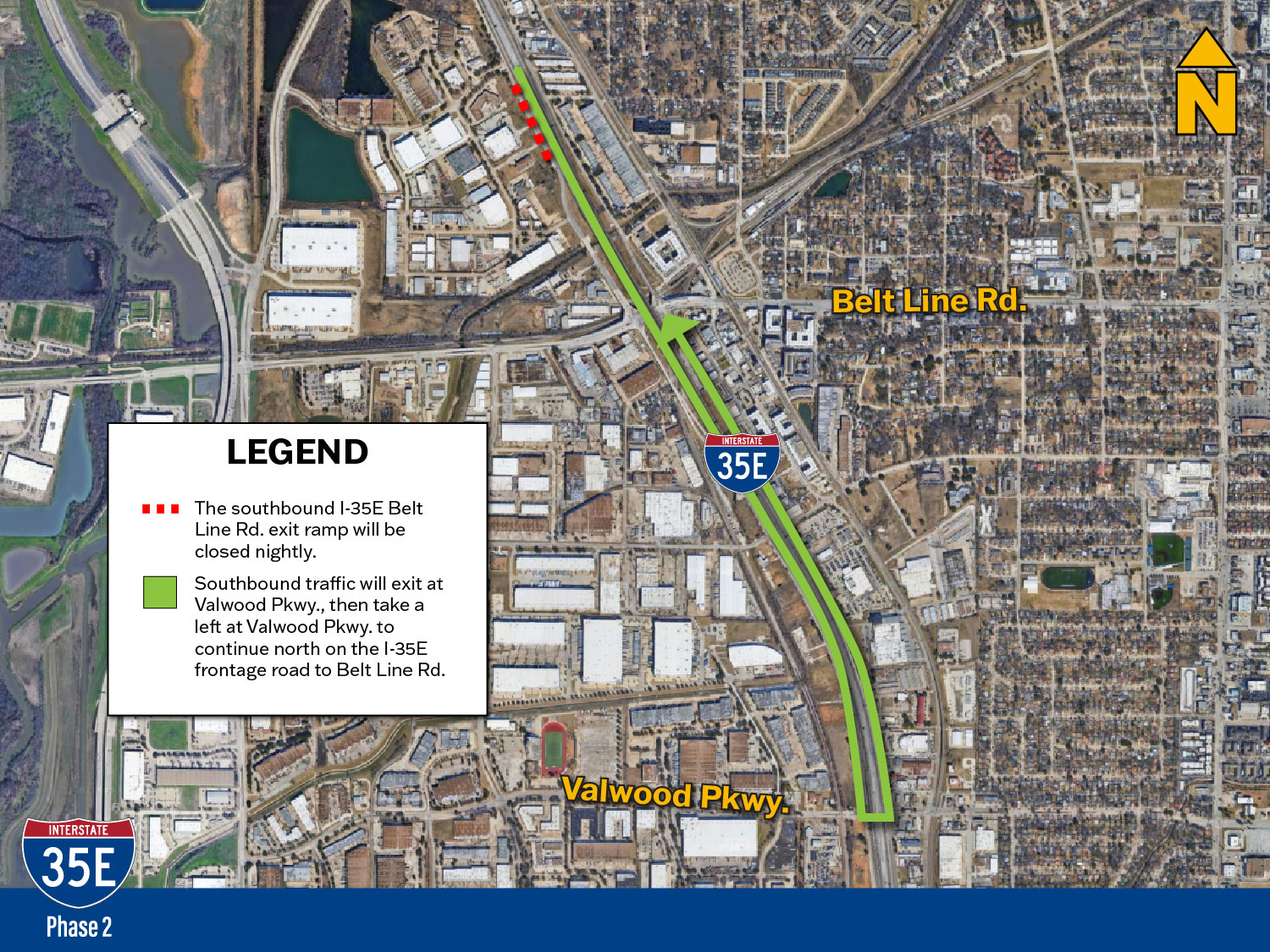 The northbound Valley View Lane exit ramp will be closed from 8 p.m. Tuesday, January 6 to 6 a.m. Wednesday, January 7 and continue nightly until Thursday, January 8.