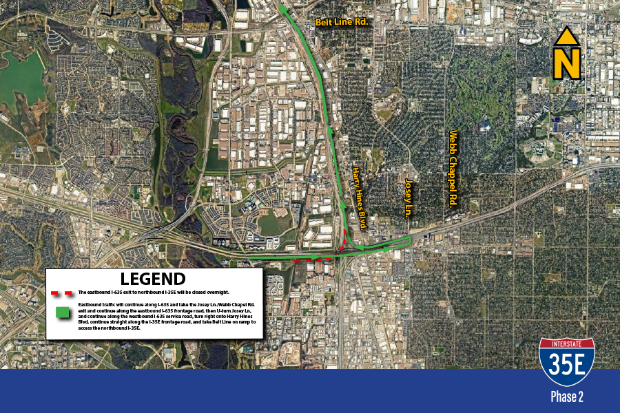 The eastbound I-635 exit ramp to northbound I-35E will be closed overnight from 8 p.m. Saturday, April 11 until 10 a.m. Sunday, April 12.