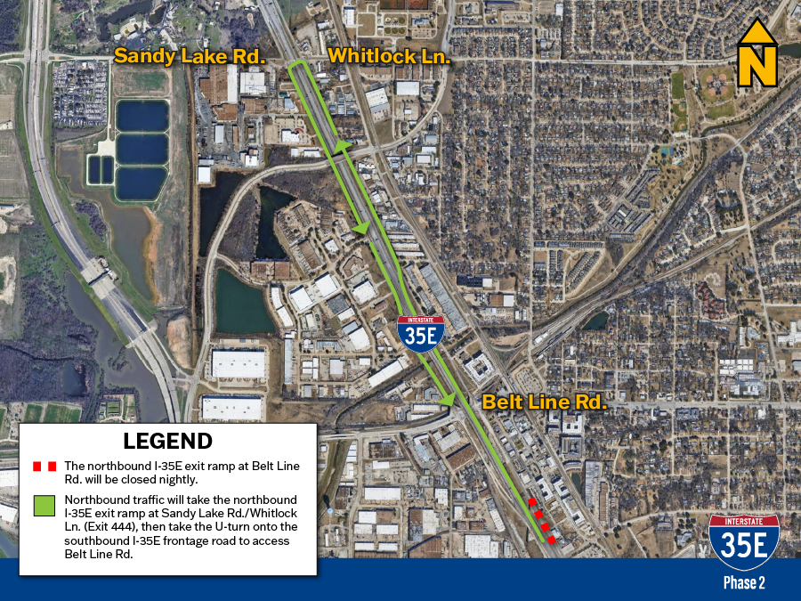 The northbound Belt Line Road exit ramp will be closed from 9 p.m. Tuesday, April 7 to 6 a.m. Wednesday, April 8 and continue nightly until Thursday, April 9.