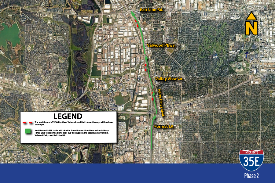 The northbound Valley View Lane exit ramp will be closed overnight from 8 p.m. Friday, April 10 until 8 a.m. Saturday, April 11.