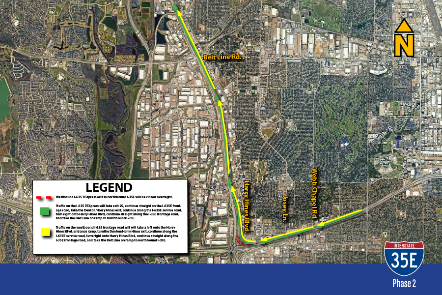 The westbound I-635 TEXpress to northbound I-35E will be closed overnight from 8 p.m. Saturday, April 11 until 10 a.m. Sunday, April 12.