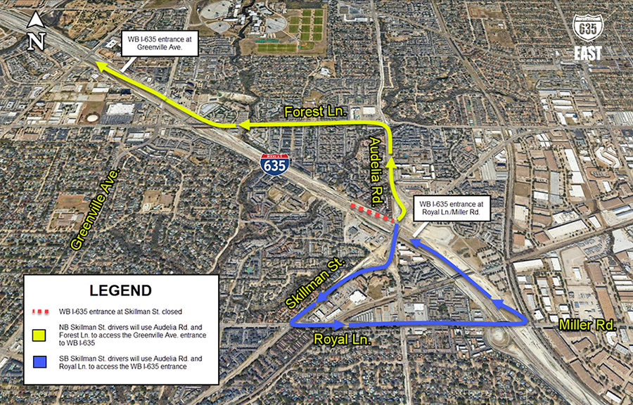Ramp Westbound I-635 entrance at Skillman Street |