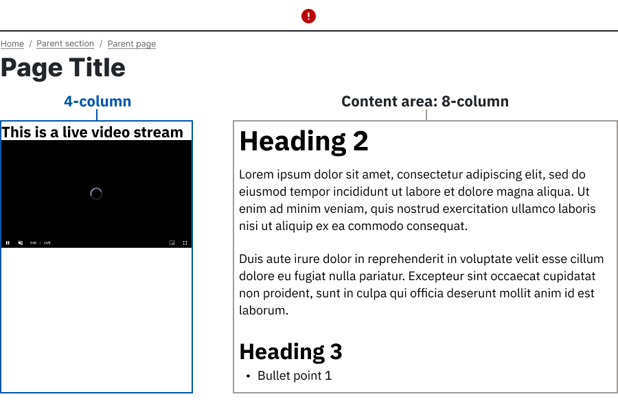 Good example: The Live Video Stream is placed in a wide content area using the Standard (Inset) layout near the top of the page.