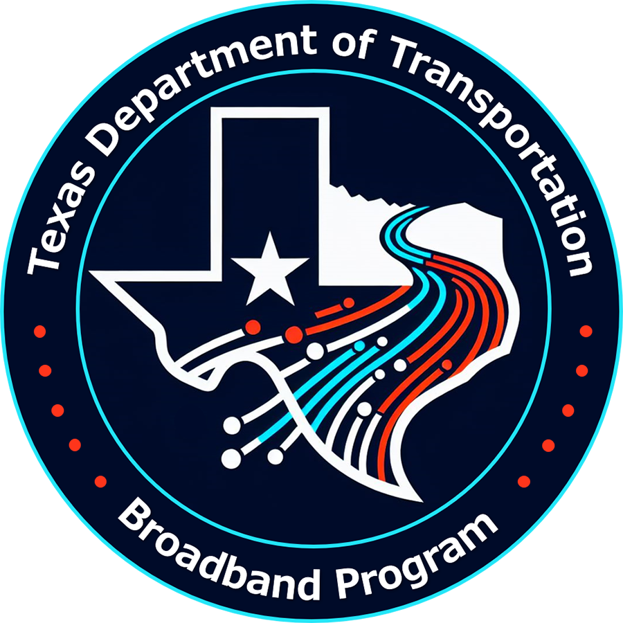 Launched in 2023 and jointly sponsored by the Right of Way and Information Technology Divisions, the TxDOT Broadband Program is responsible for administering the agency's broadband program. To deploy infrastructure and reduce costs to Texas, collaboration between public and private partners is vital. TxDOT Broadband Program will: