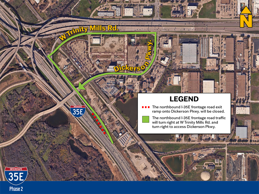 El giro de Trinity Mills Road en la I-35E estará cerrado de forma permanente a partir del jueves 2 de marzo.
