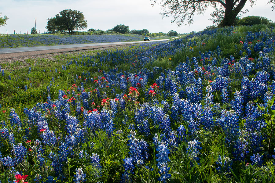 TxDOT buys and sows about 30,000 pounds of wildflower seed each year. The peak wildflower blooming season draws tourists from all across the nation to see the color unfold each spring.