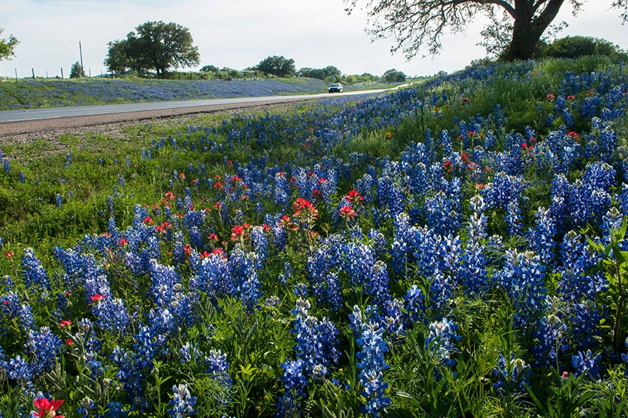 Plantación de Bluebonnets y otras flores silvestres nativas