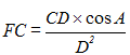 where CD is the candlepower, A is the angle of incidence of the light beam, and D is the distance of the surface from the light source.