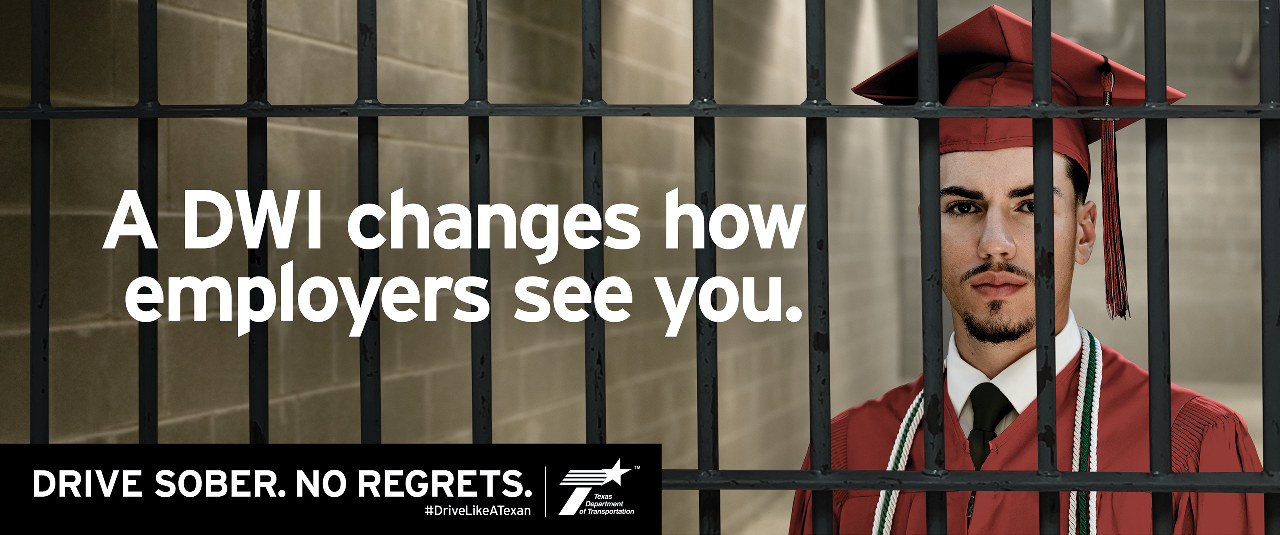 Spring break is supposed to be a fun time for students, but drinking and driving can turn celebrations deadly. That’s why TxDOT’s Drive Sober. No Regrets. statewide impaired driving prevention campaign is reminding everyone, but especially students on spring break, to never drive after drinking any amount of alcohol. Even one drink is too many.